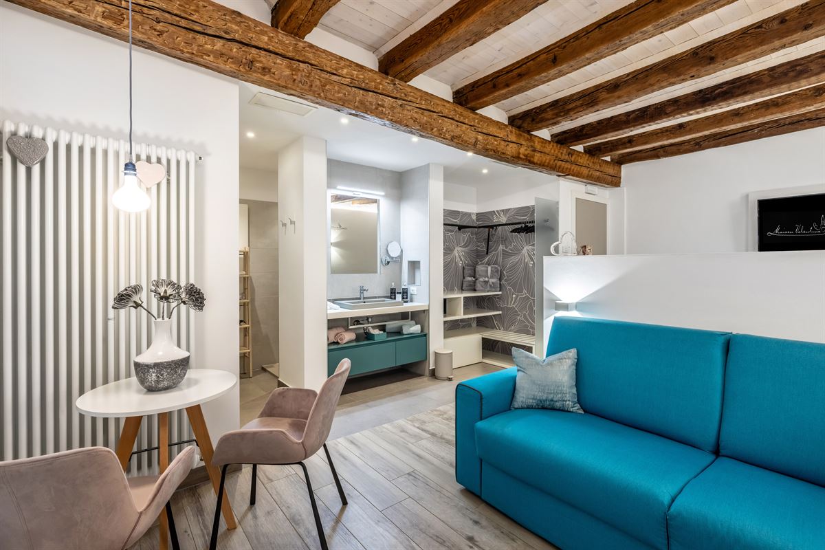 Questa tipologia di camera può ospitare un massimo di 4 persone: dispone di un letto matrimoniale king size (180 x 200 cm) e un divano letto matrimoniale.