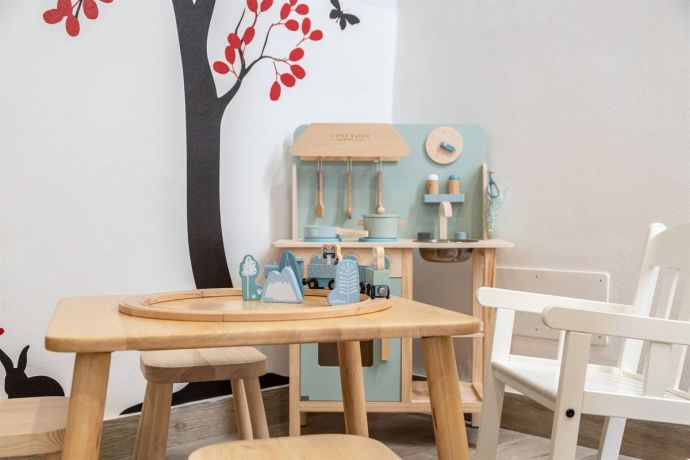 Zona Giochi: la nostra area dedicata ai più piccoli è attrezzata con una piccola cucina in legno, un tavolino e tre sgabelli, oltre a una libreria dotata di colori e quaderni.