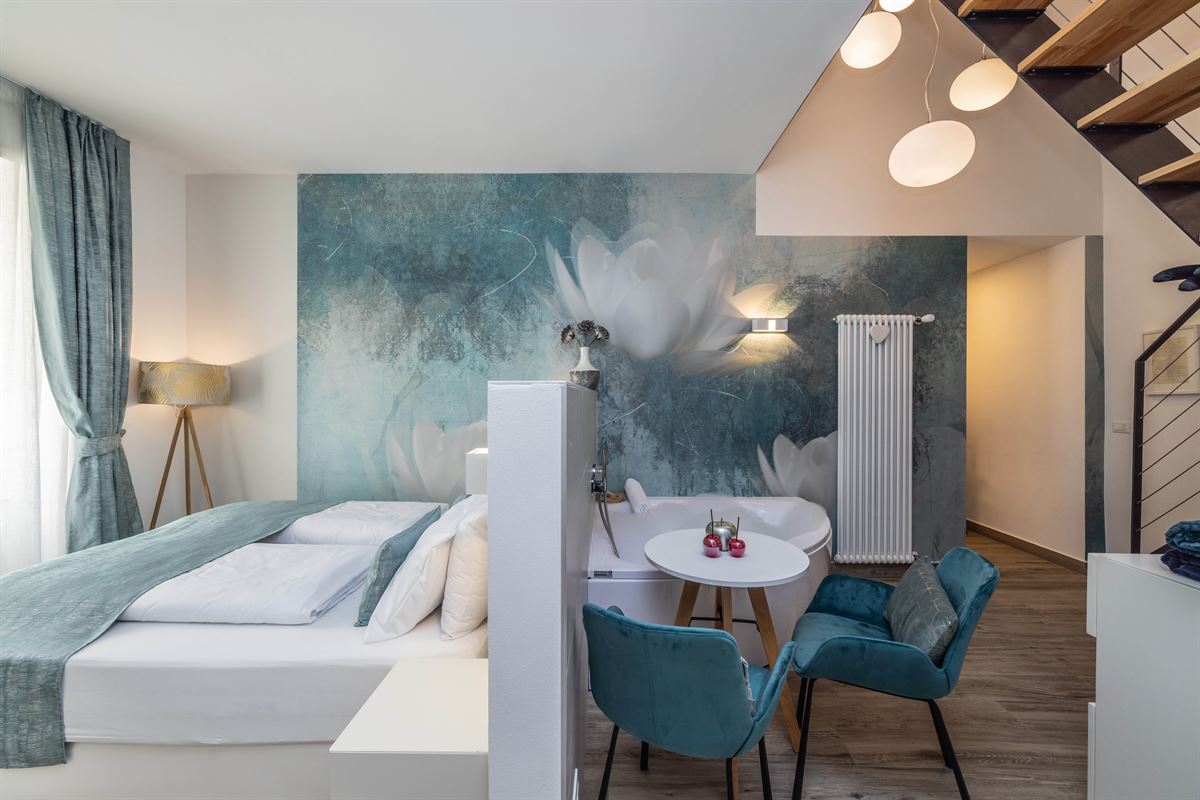 Suite Relax è la nostra camera più spaziosa e si presenta come un’elegante dimora su due livelli, richiamando il fascino dello stile loft.